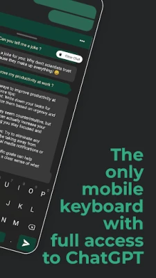Zakoračite u novu eru digitalne komunikacije uz AI GPT tipkovnicu, ultimativno rješenje koje transformira vaše svakodnevno tipkanje. Integriran s naprednim GPT Keyboard Assistantom, ova tipkovnica nije samo alat za unos teksta, već vaš inteligentni suputnik u pisanju. Od generiranja svježih ideja i elegantnih formulacija, preko pomoći u kodiranju, pa sve do preciznih ispravaka teksta i odgovora na vaša pitanja u stvarnom vremenu – GPT Keyboard Assistant osigurava da svaka vaša poruka bude jasna, kreativna i besprijekorna. Recite zbogom jezičnim barijerama i uživajte u besprijekornom protoku misli pretočenih u tekst.