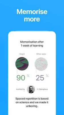 "Cogni: Study with Flashcards" pomaže vam učiti pametnije uz razmaknuto ponavljanje. Ovladajte jezicima, pripremite se za ispite i zapamtite složene teme dugoročno, koristeći kartice i napredne AI algoritme za aktivno prisjećanje.