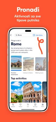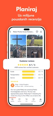S aplikacijom GetYourGuide otkrij i rezerviraj jedinstvena putovanja te nezaboravne doživljaje diljem svijeta. Istraži tisuće aktivnosti, od tura do atrakcija, i jednostavno planiraj svoju savršenu avanturu. Tvoja sljedeća uspomena počinje ovdje.
