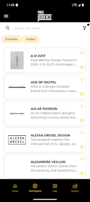 Kako biste maksimalno iskoristili svoje iskustvo, Paris Design Week donosi set ključnih značajki dizajniranih za vašu udobnost i informiranost. Pratite ažurirani raspored svih predavanja i panel diskusija, stvarajte vlastite rute posjeta i pohranjujte omiljene lokacije kako biste im se lako vratili. Uz obavijesti u stvarnom vremenu o događanjima i promjenama, kao i sveobuhvatne praktične informacije nadohvat ruke, uvijek ćete biti korak ispred. Otkrijte, doživite i inspirirajte se sa službenom aplikacijom Paris Design Week.