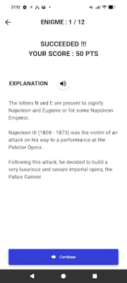 Avanture s PARIS ÉNIGMES vode vas kroz neke od najljepših francuskih gradova, nudeći raznovrsne tematske potrage. U Parizu možete istražiti Montmartre, Père Lachaise, Marais ili otkriti svijet Napoleona i *Street Arta*. Strasbourg vas čeka sa svojom Katedralom, Saint-Emilion s čarima srednjovjekovnog grada, a Nantes s naglascima svog centra. Čak i House nudi uzbudljivu "pljačku stoljeća"! S PARIS ÉNIGMES, jednostavno odaberete željenu potragu, slijedite kartu unutar aplikacije do prve lokacije, uživate u rješavanju zagonetke, poslušate povijesno objašnjenje i nastavite prema sljedećem izazovu. Svaki korak je nova tajna, nova priča, novo otkriće. Pripremite se za avanturu koja će vas oduševiti!