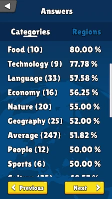 Uronite u tisuće zabavnih pitanja, obogaćenih slikama, te učite fascinantne i iznenađujuće činjenice o stranim kulturama. Bilo da vas zanimaju Ljudi, Povijest, Znanost ili Astronomija, širok spektar kategorija osigurava neprekidnu zabavu i učenje. Popunite svoju kolekciju virtualnim prijateljima sa svakog kontinenta i usporedite svoj napredak s drugim igračima na ljestvici, sakupljajući nagrade za svoja postignuća.