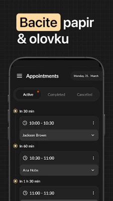 Upravljanje rasporedima nikad nije bilo jednostavnije. Bilo da je riječ o zakazivanju novog termina, brzoj izmjeni postojećeg ili otkazivanju, sve je dostupno u nekoliko dodira. Budite uvijek u toku s obavijestima u stvarnom vremenu za svaku akciju, osiguravajući potpunu transparentnost. Značajno smanjite broj nedolazaka i poboljšajte angažman klijenata uz automatske SMS podsjetnike i profesionalne potvrde termina putem e-pošte. Uz to, učinkovito organizirajte svoj tim, dodjeljujući uloge zaposlenicima i moderatorima, čime osiguravate glatko i koordinirano poslovanje.
